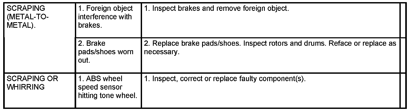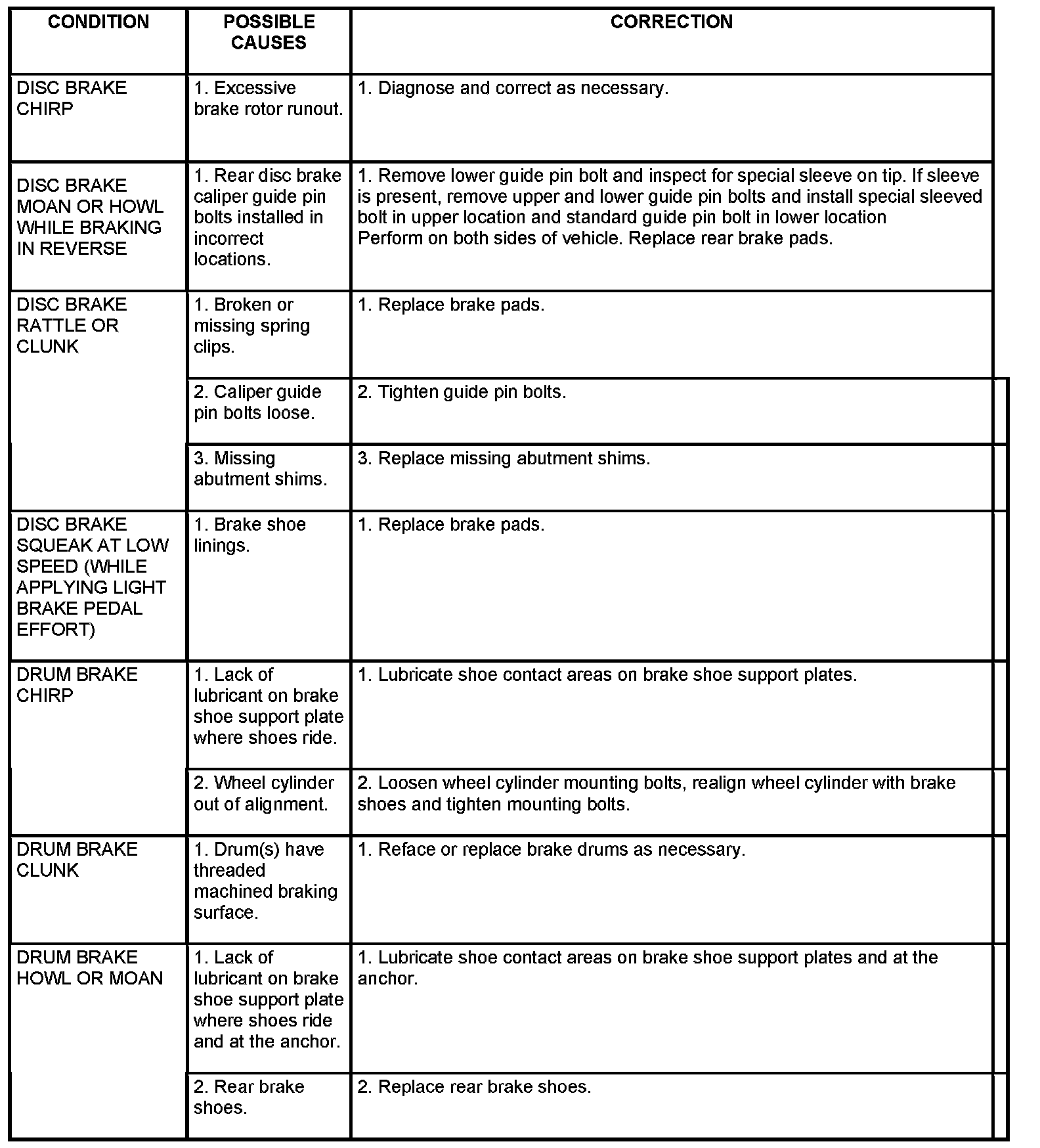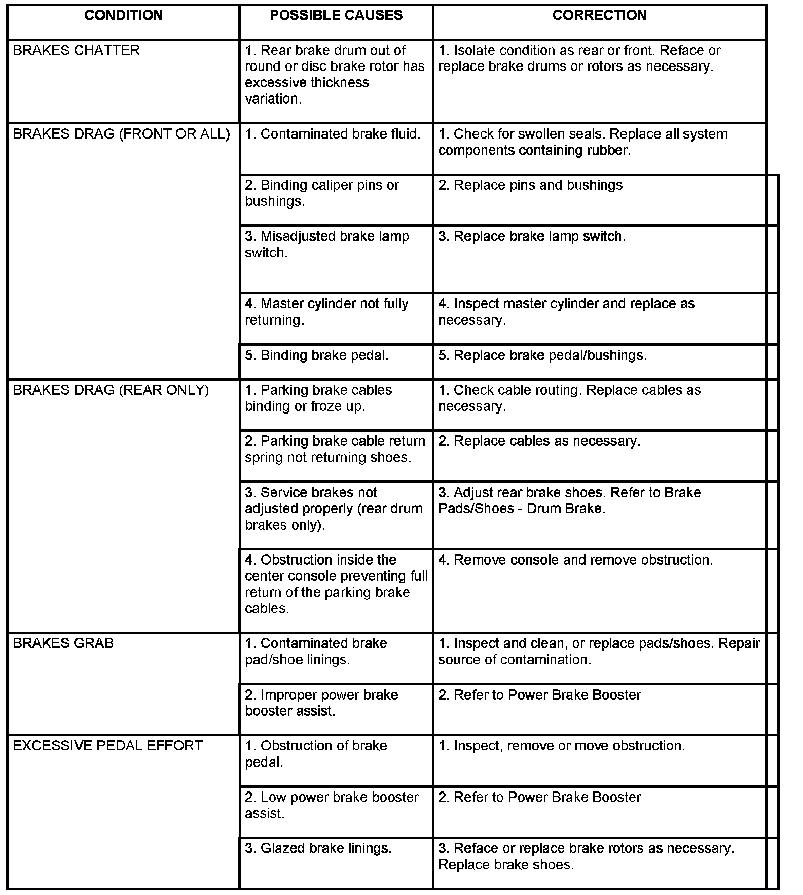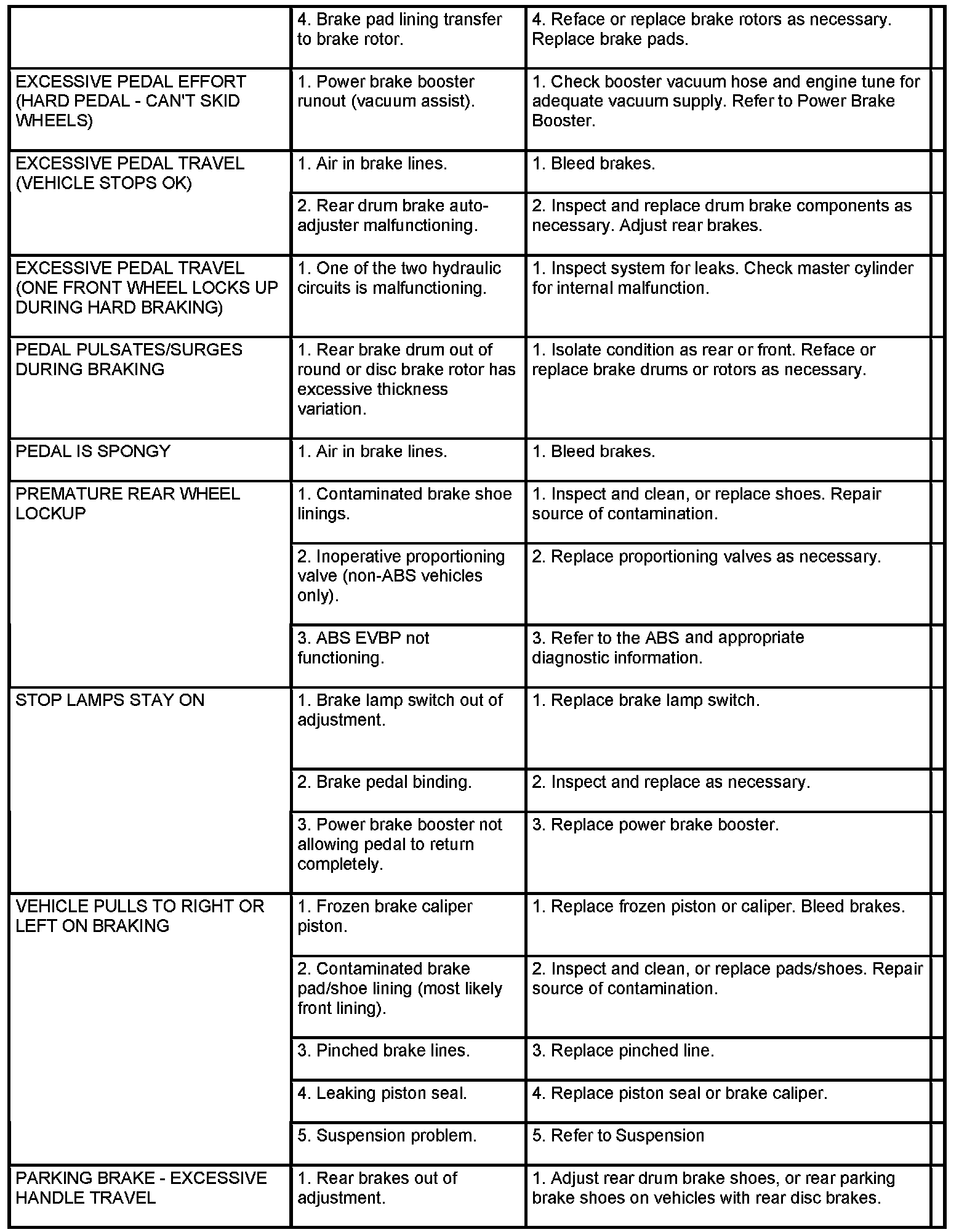 BASE BRAKE SYSTEM DIAGNOSIS CHARTS