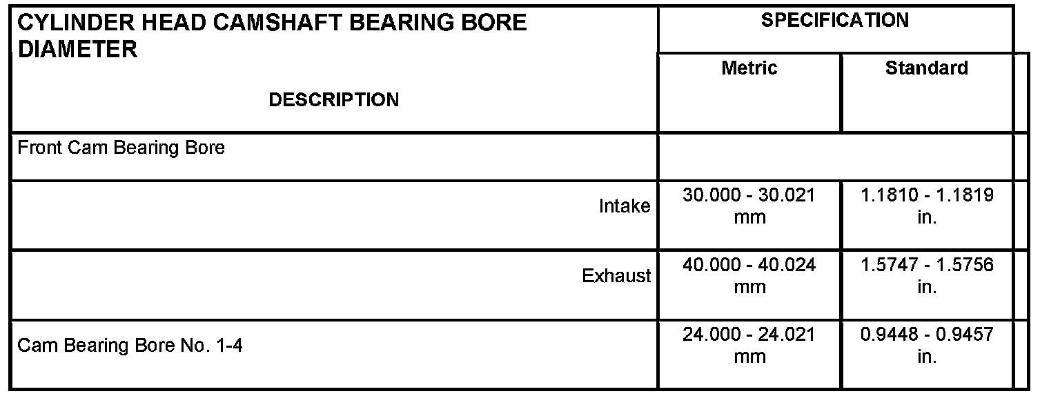 Cylinder Head Camshaft Bearing Bore Diameter