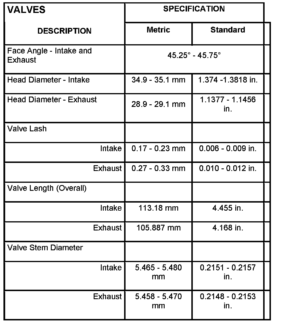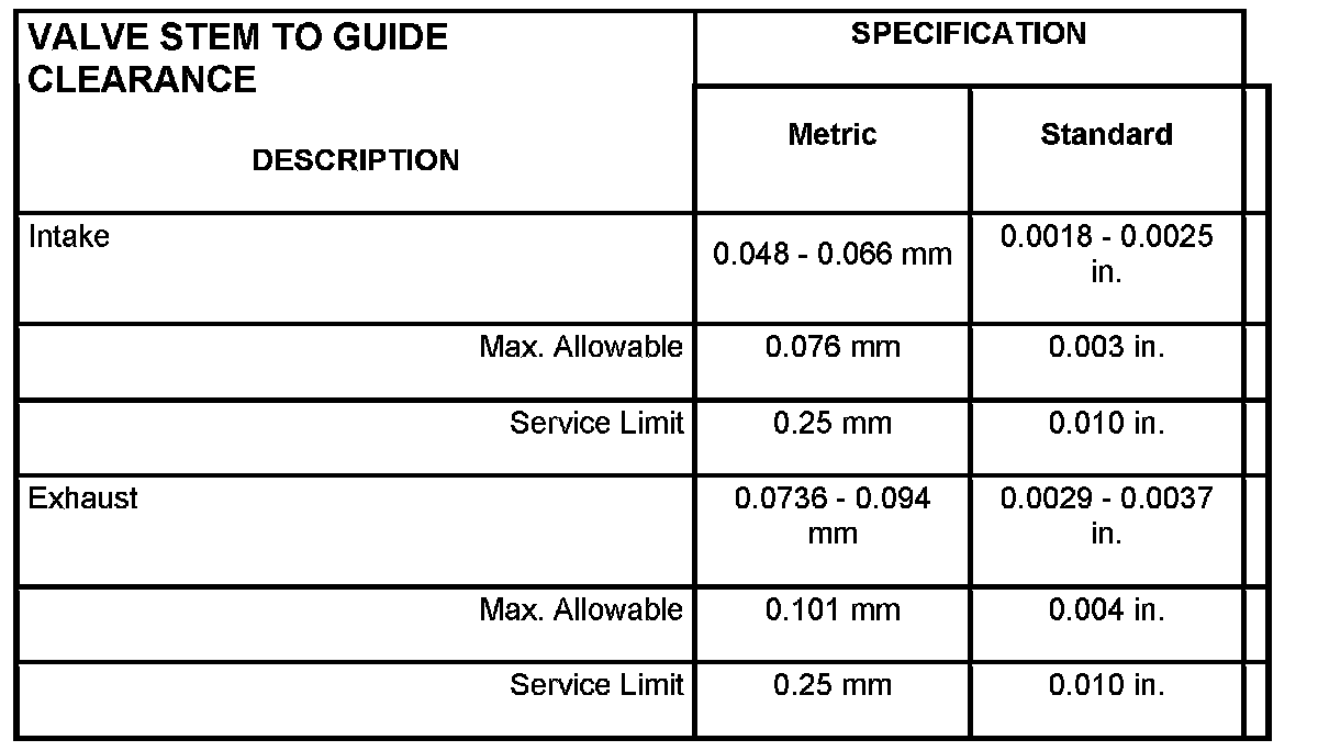 Valve Stem To Guide Clearance: