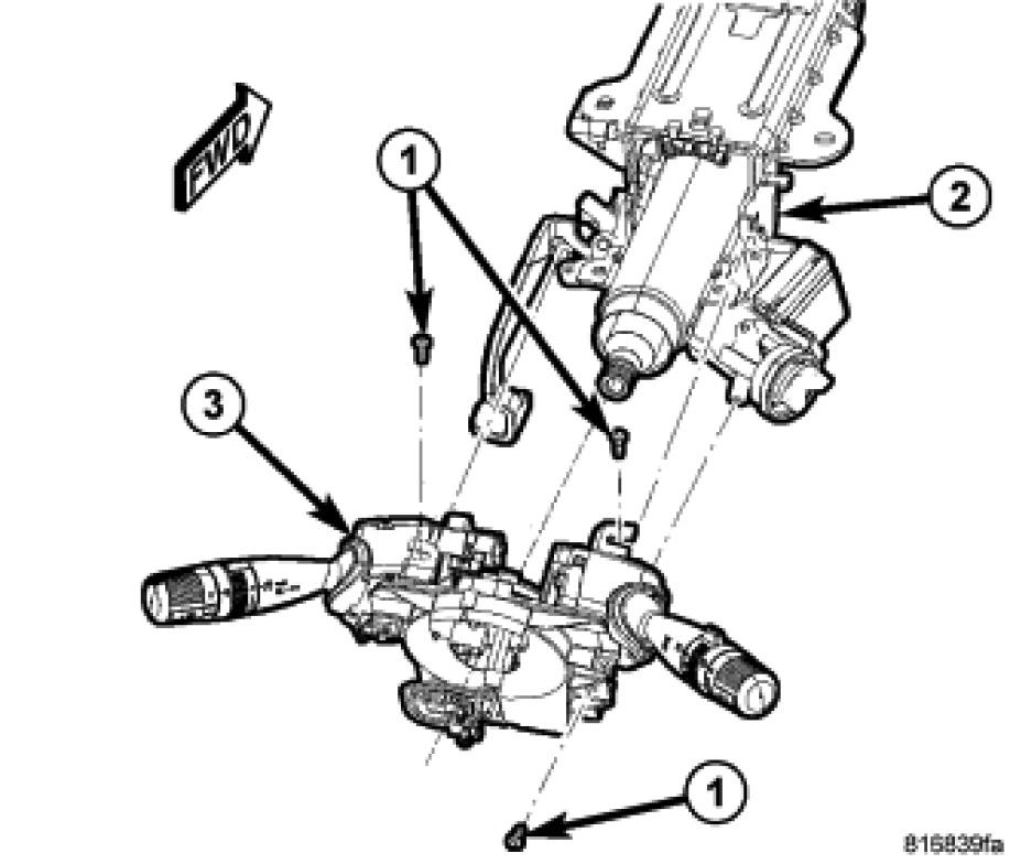 1. Position the SCCM (3) over the steering column shaft (2).