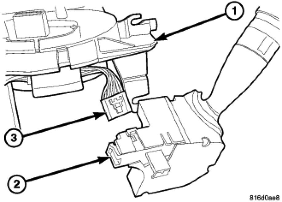 3. Connect the electrical connectors (2) to the instrument panel harness, ensure wiring is properly routed. Then check that the connectors, locking tabs are properly engaged.