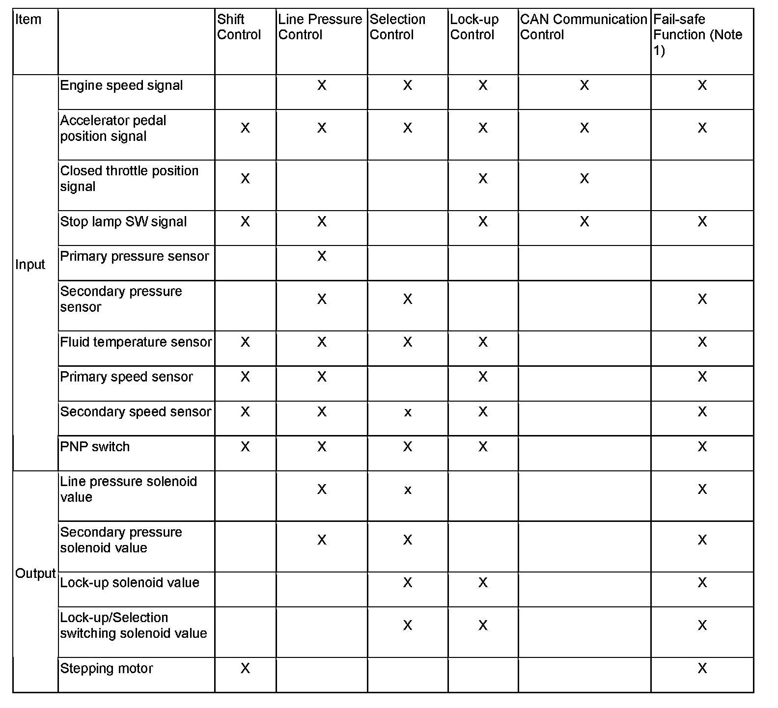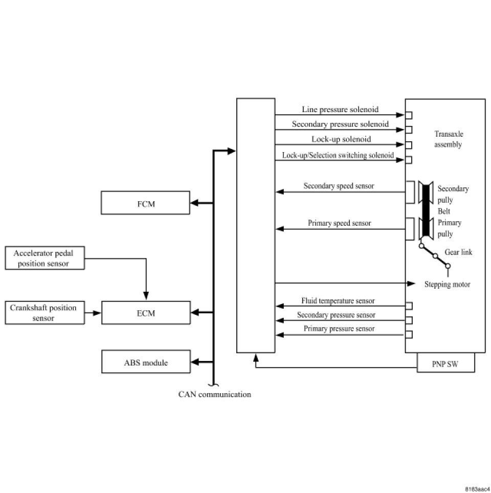 TCM sends information such as fast slowdown signals, lock-up signals, torque down request signals to ECM, while receiving information such as torque down permission/prohibition signals, lock-up permission/prohibition signals, throttle position from ECM.