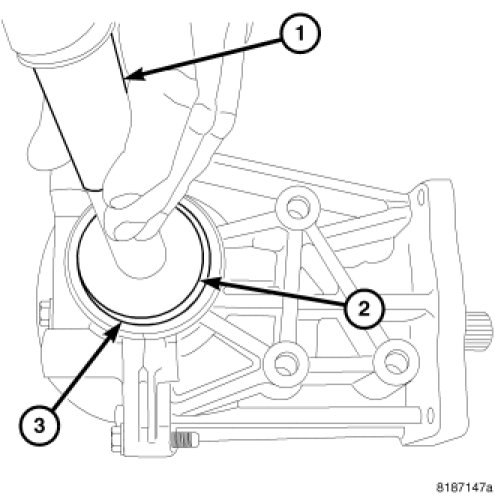 18. Install measured side shims (3) and carrier (1) into the carrier housing (2).