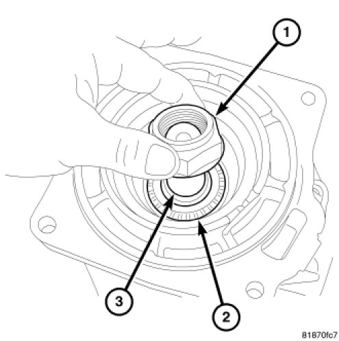 6. Install the pinion nut (1) onto the pinion shaft (3).