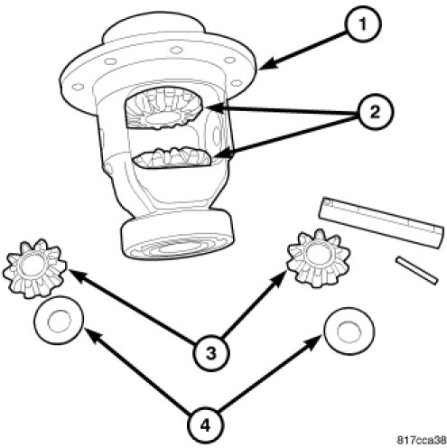 9. Install side gears (2), shims (4) and pinion gears (3) into carrier (1).