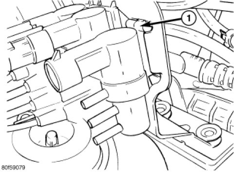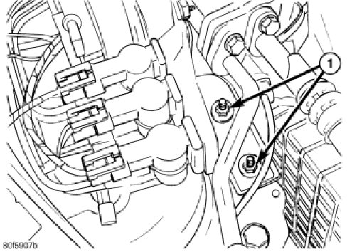 Remove nuts (1) securing solenoid mounting bracket to shock tower.