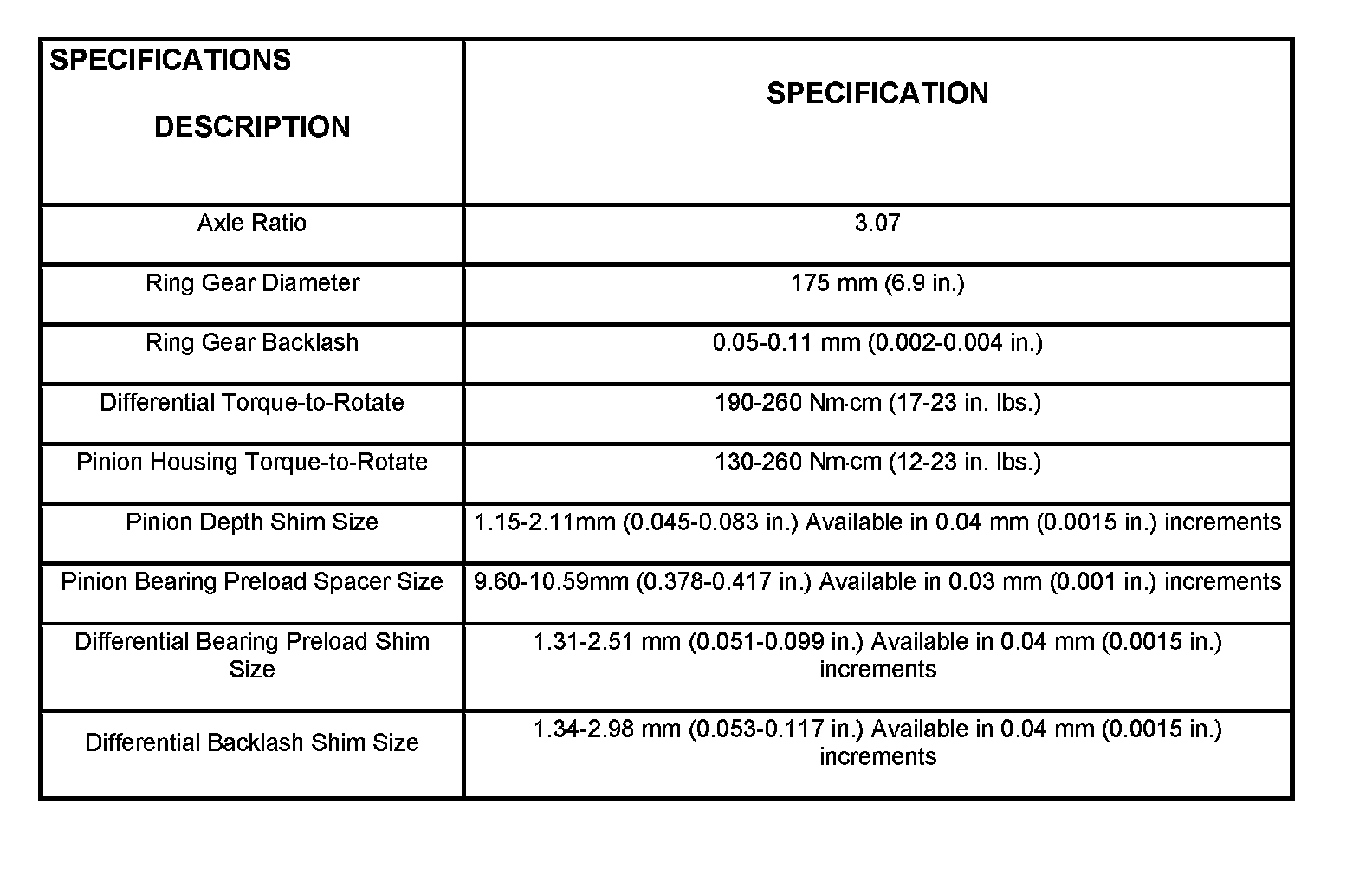 Axle Specifications:
