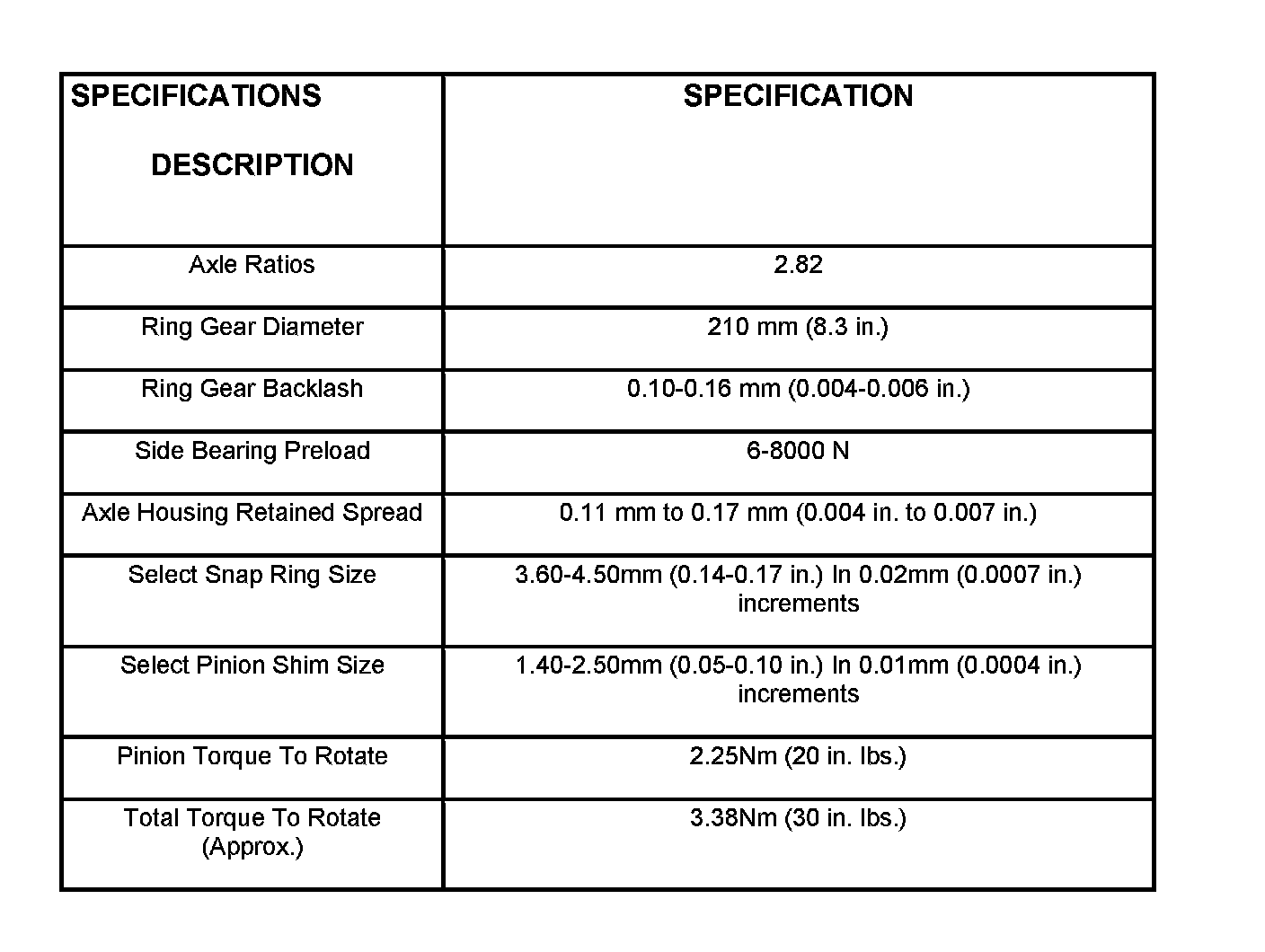 Axle Specifications: