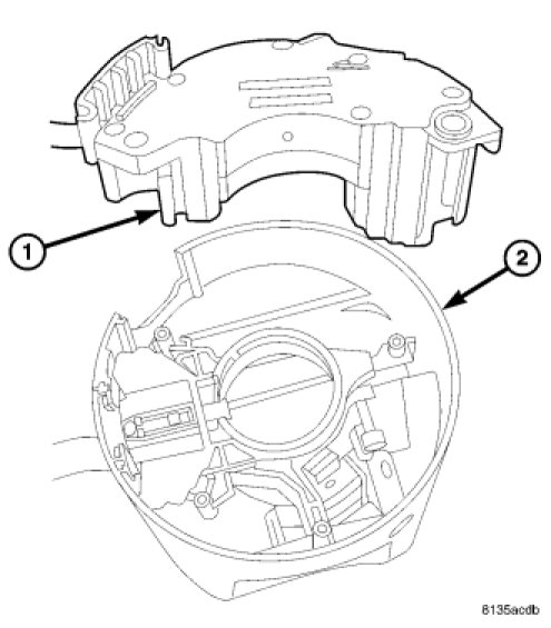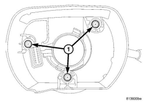9. Install the SCCM on the steering column and tighten the one clockspring screw (1) that was left loose.