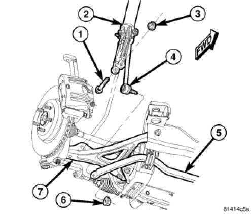 14. Install nut (3) and bolt (1) attaching shock clevis bracket (2) to lower control arm (7). Tighten to 174 Nm (128 ft. lbs.).