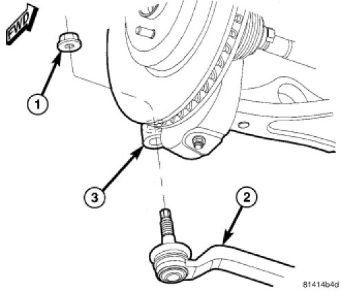 16. Install outer tie rod (2) end nut (1) at each knuckle (3). Tighten end nut to 86 Nm (63 ft. lbs.).