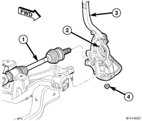 7. Tighten left and right ball joint nut (4) to 122 Nm (90 ft. lbs.) attaching lower control arm ball joint stud to knuckle (3).