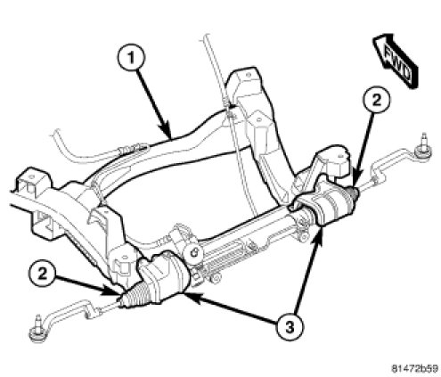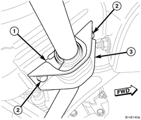 11. Install heat shield (3) and mounting screws above each inner tie rod bellow.
