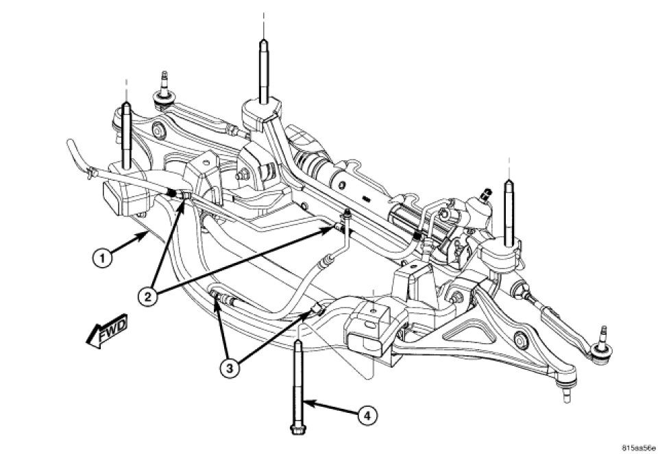 9. Install steering gear lower mounting bolts (2 and 3). Tighten to 142 Nm (105 ft. lbs.).