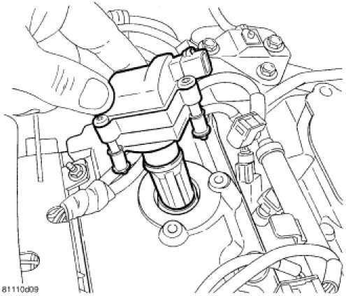2. Install coil screws and tighten: 2.7L engine to 6 Nm (55 in. lbs.).