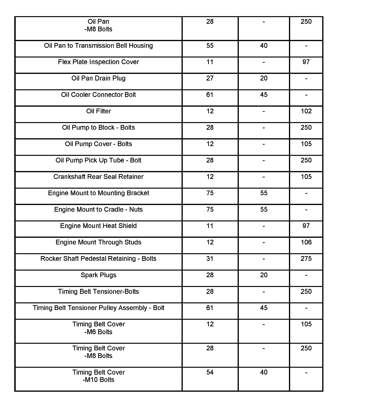 Engine Torque Specifications