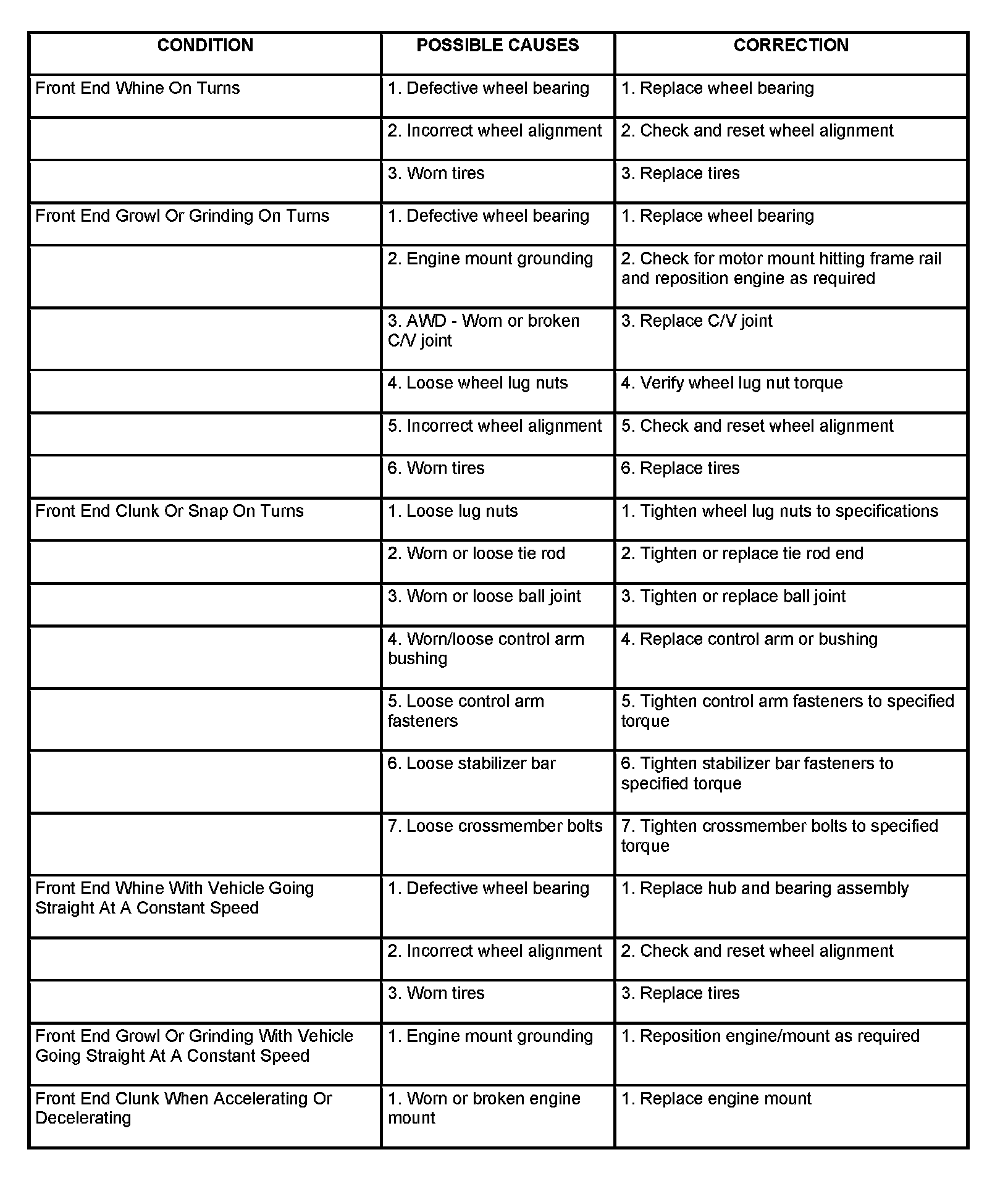 Suspension And Steering Diagnostic Chart (Part 1):