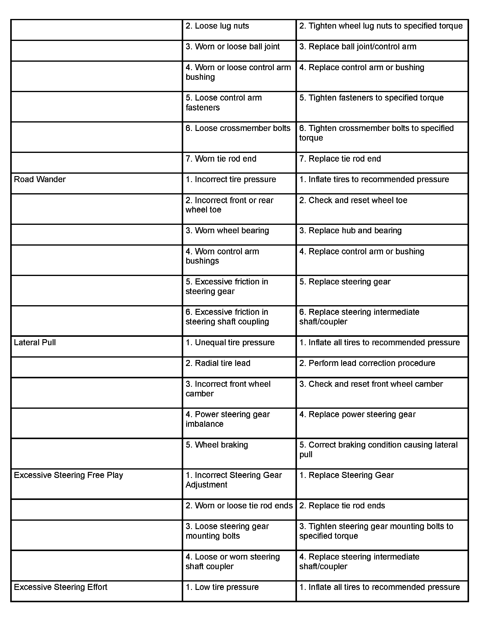 Suspension And Steering Diagnostic Chart (Part 2):