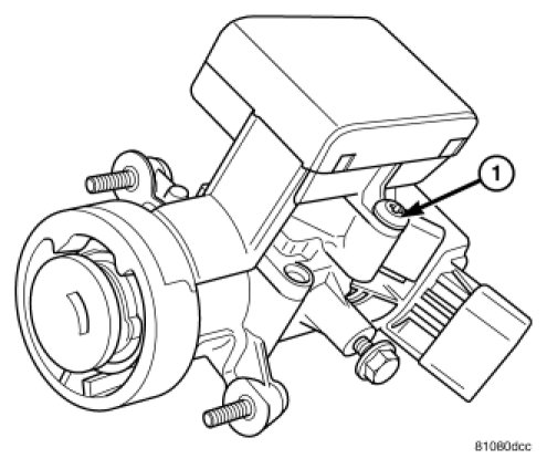 1. Position the SKREEM on the ignition lock housing and install the retaining screw (1).