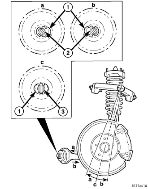 NOTE: When adjusting rear toe, the eccentric lobes on the toe adjustment cam bolts and washers are not to be facing downward. The lobes should only be facing upward or up to 90� to one side or the other from the 12 O'clock position.