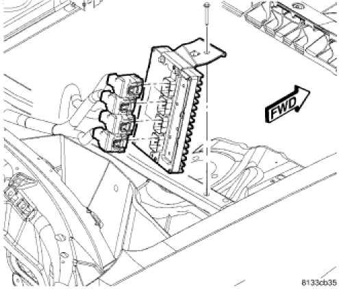 To avoid possible voltage spike damage to PCM, ignition key must be off, and negative battery cable must be disconnected before unplugging PCM connectors.