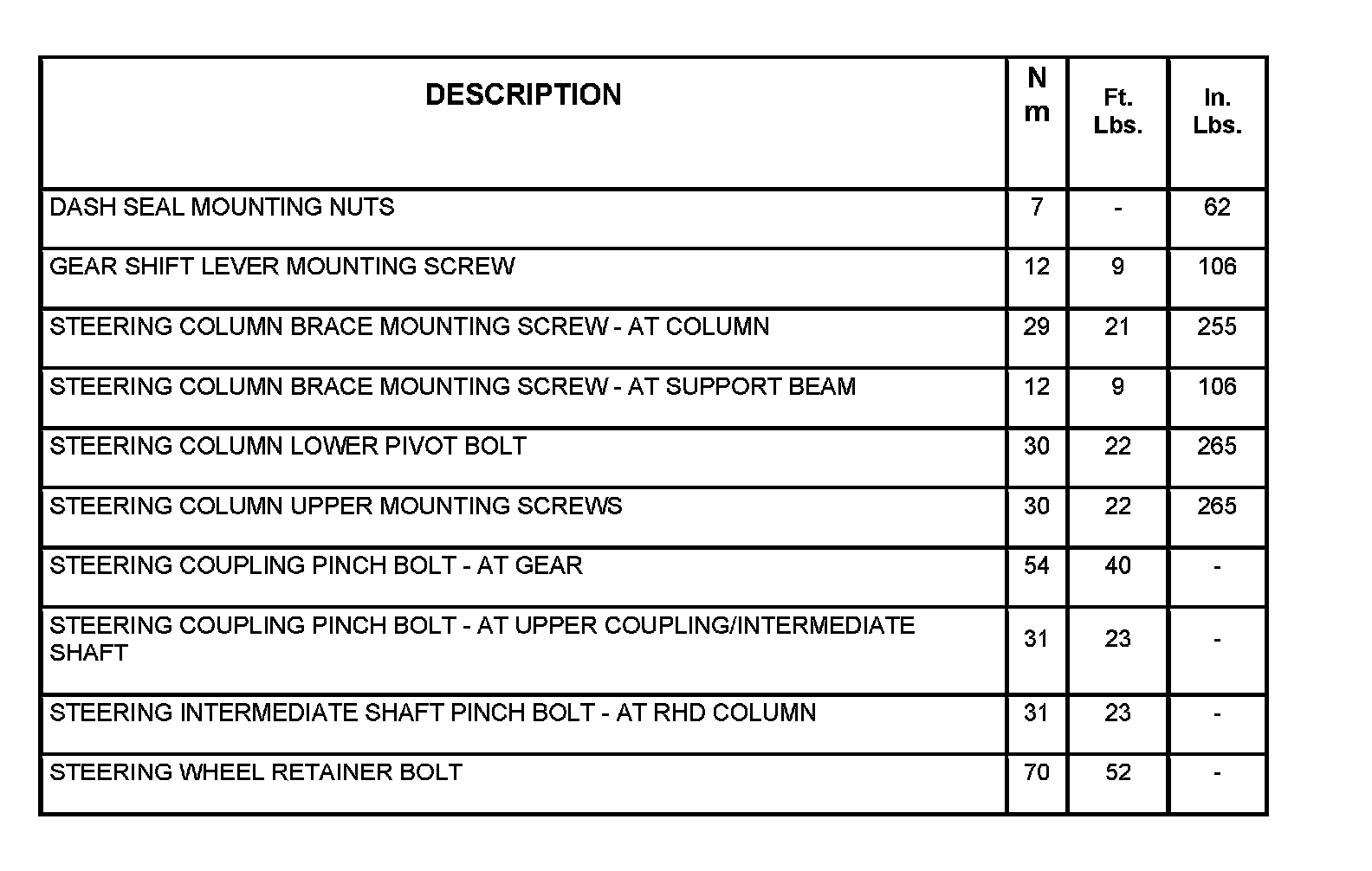 Torque Specifications: