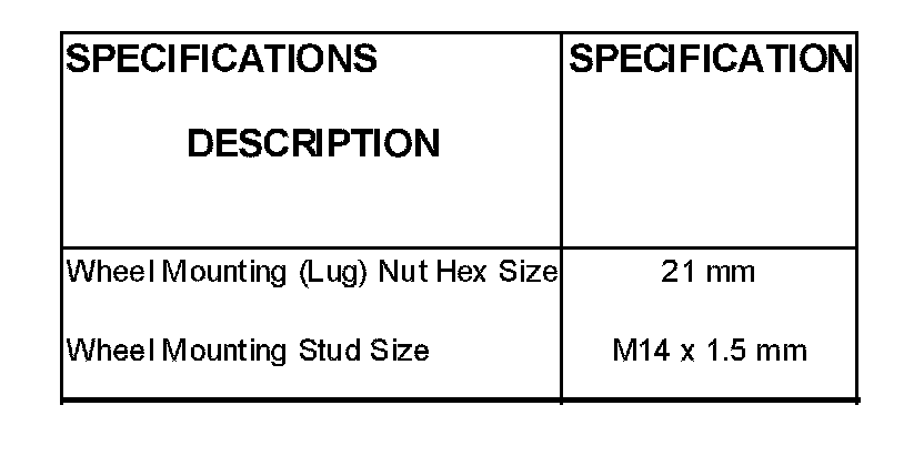 Wheel Fastener Specifications: