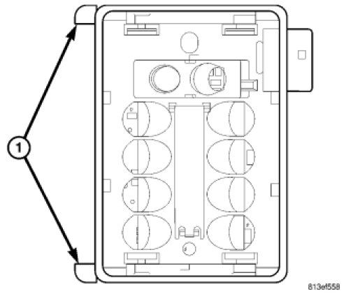 3. Push the slider cam locks (1) inward until they are flush with the side of the sensor case.
