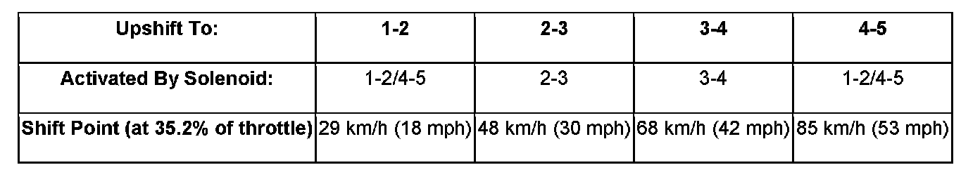 Based on how aggressive the driver is, the TCM moves up the shift so that the present gear is held a little longer before the next upshift. If the driving style is still aggressive, the shift point is modified up to ten steps. If the driving returns to normal, then the shift point modification also returns to the base position.