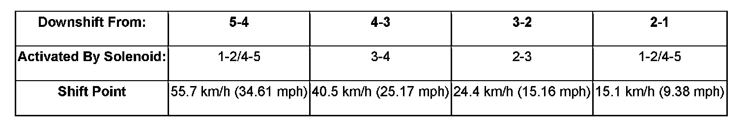 When the TCM detects that system voltage has dropped below 8.5 volts, it disables voltage-dependant diagnostics and places the transmission in the temporary Limp-In Mode. When the TCM senses that the voltage has risen above 9.0 volts, normal transmission operation is resumed.