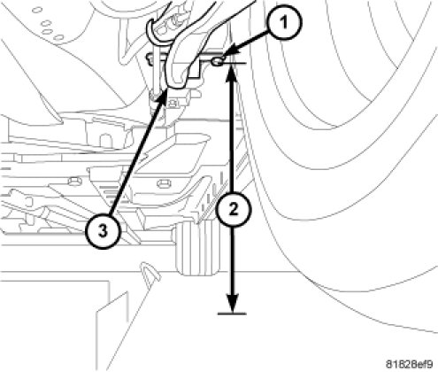 NOTE: Prior to reading the curb height measurement, the front and rear of the vehicle must be jounced to settle the suspension. Induce jounce by pushing down on the center of the bumper (fascia), using care not to damage the vehicle, moving the vehicle up and down, gradually increasing the suspension travel with each stroke. Release the bumper at the bottom of each stroke, repeating this action several times. Perform this to both front and rear suspensions an equal amount of times.