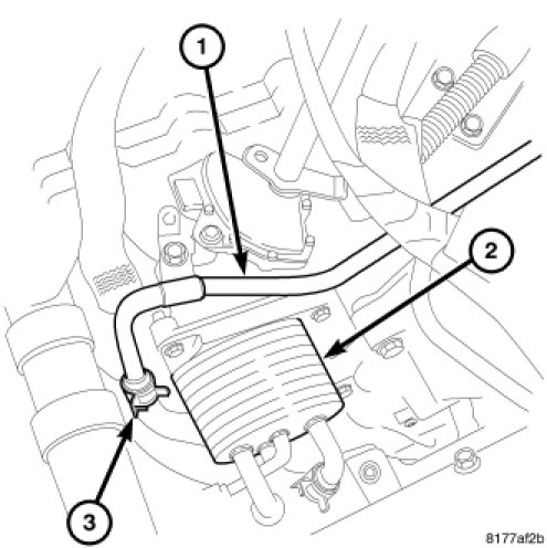 21. Install the heater hose at transmission cooler tube (3).