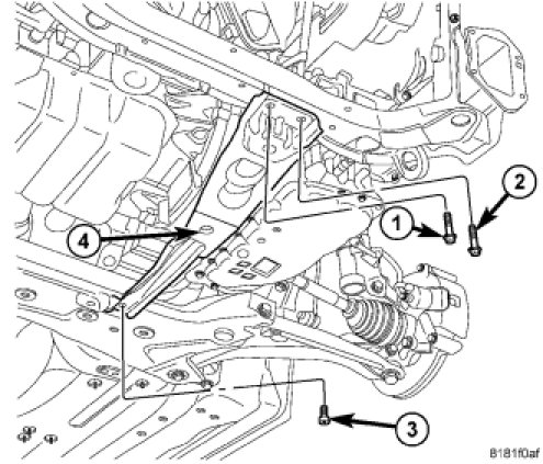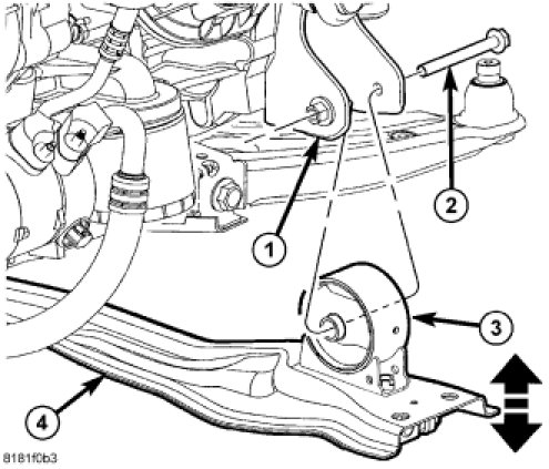 1. Install the fore/aft crossmember and install the engine anti-roll mount (3) through bolt (2).