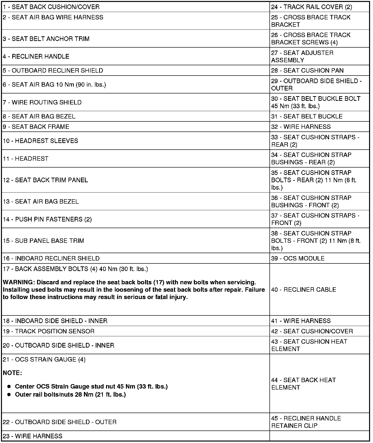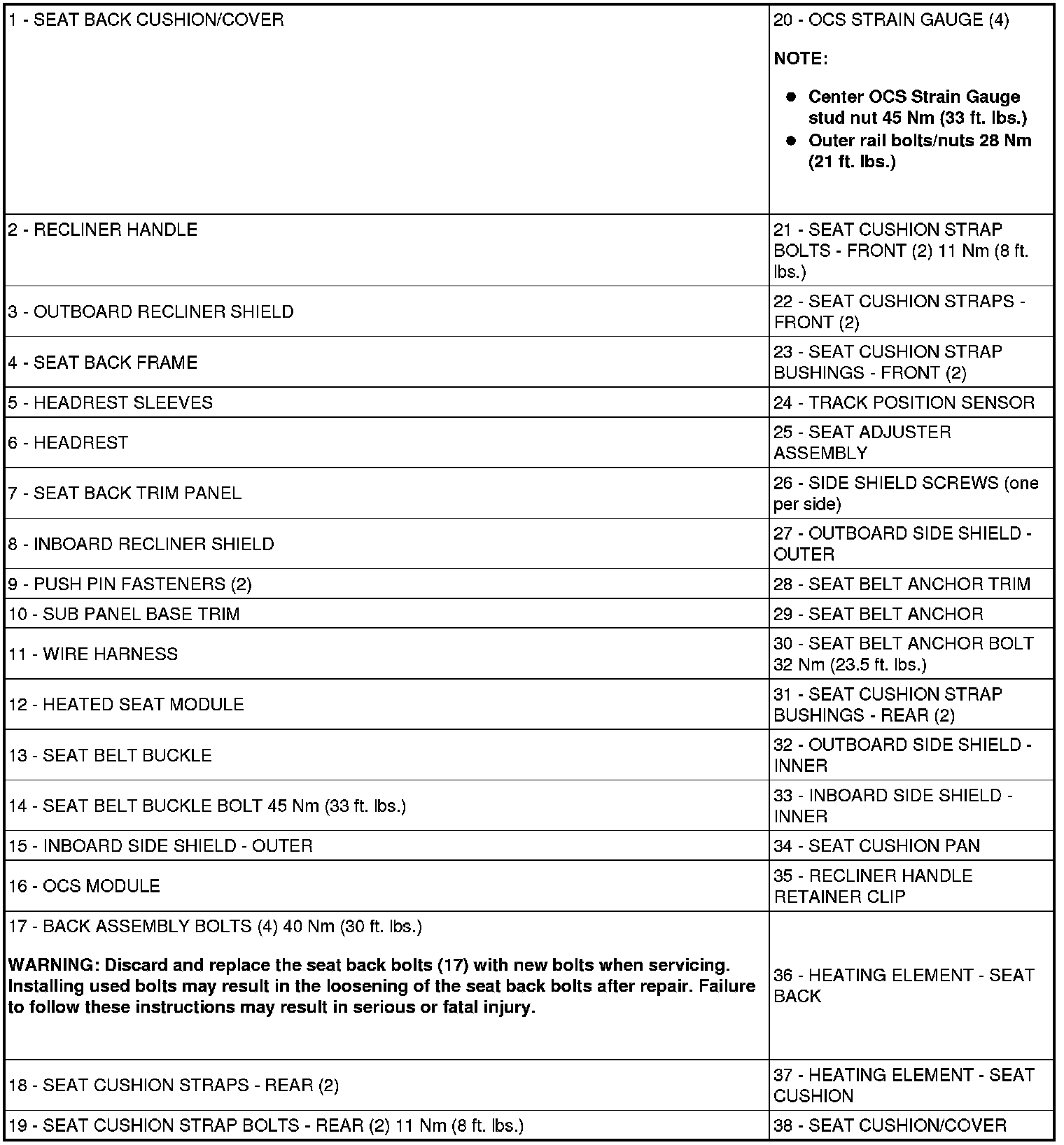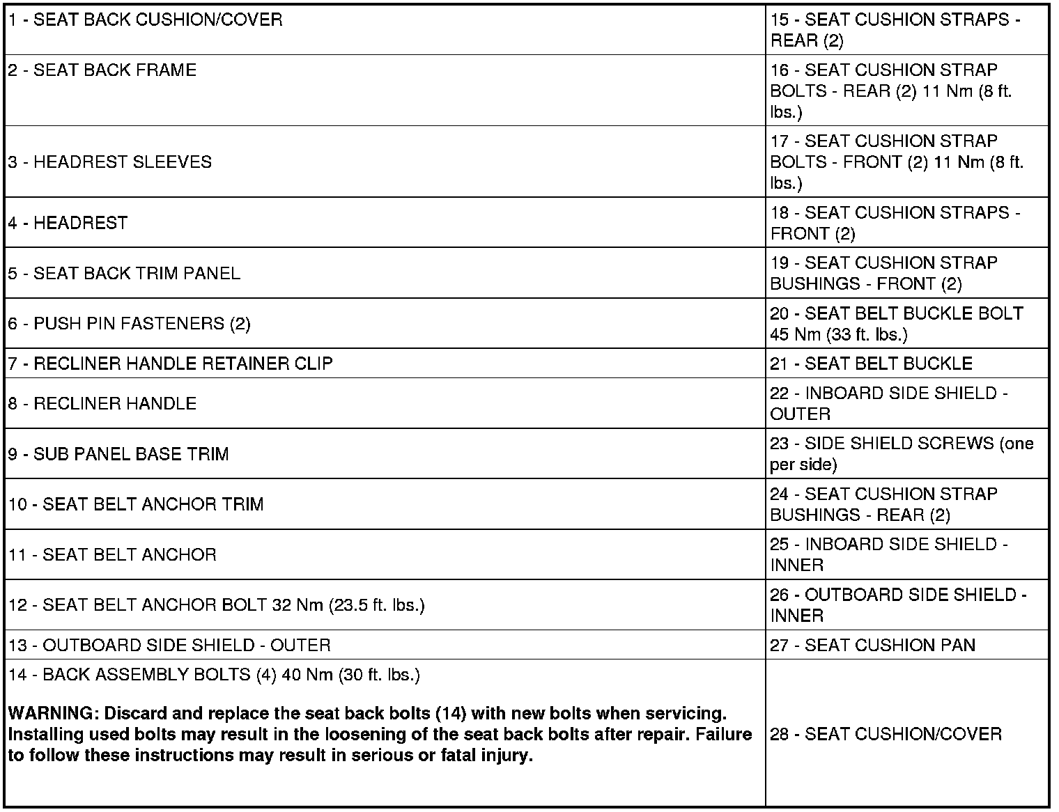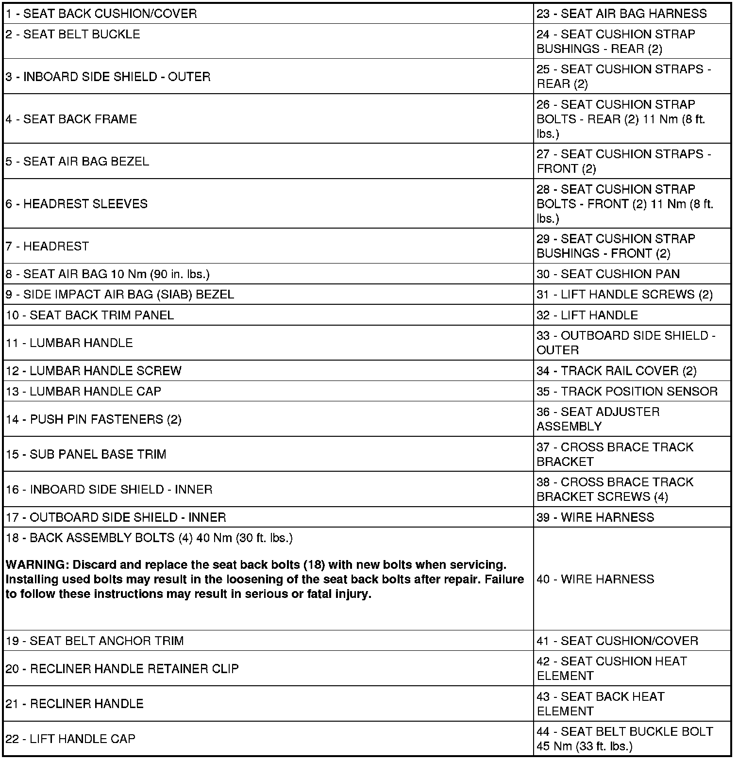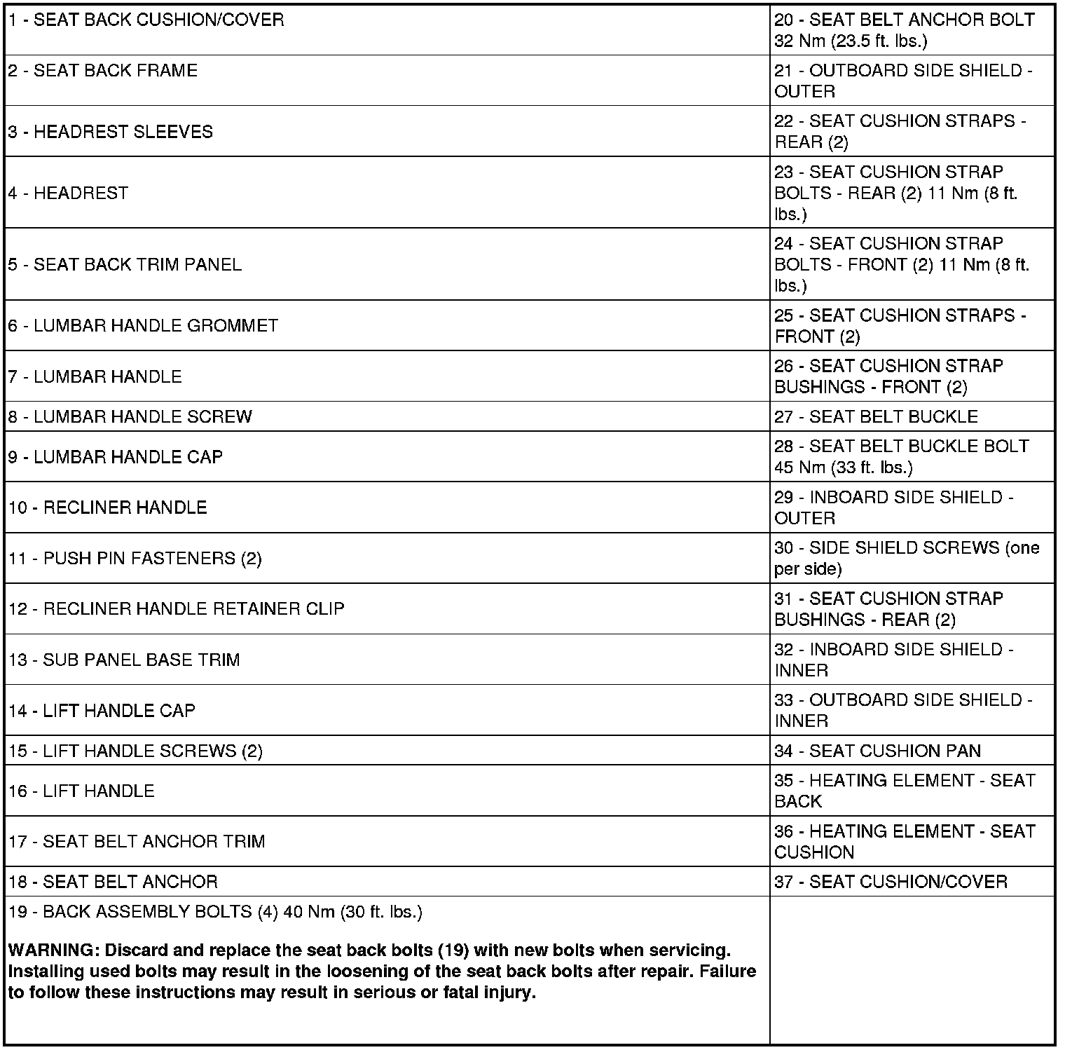 Seats: Description and Operation