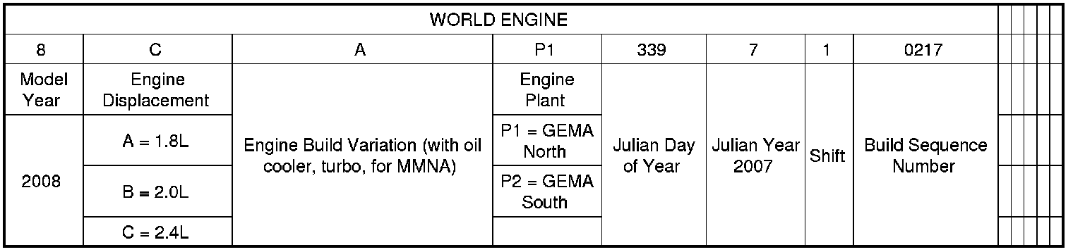 and the bellhousing. The serial number contains engine build date, build information, displacement, and build sequence number
