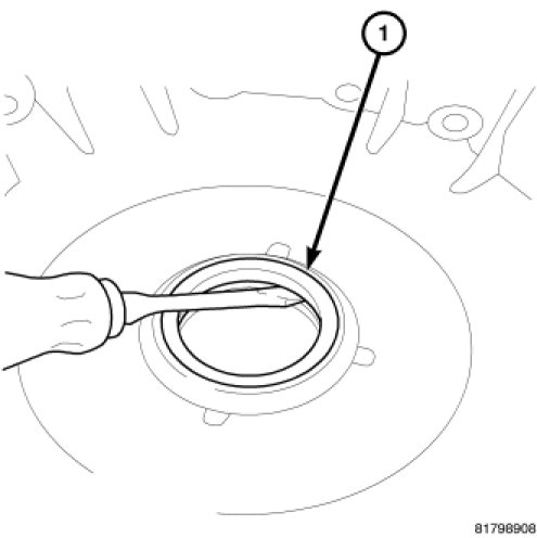 20. Remove converter housing oil seal (1) from converter housing using a screwdriver.