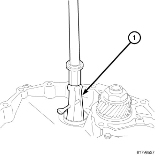 21. Remove outer race (1) of differential side bearing from converter housing using a suitable punch.