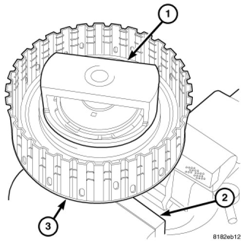 14. Remove the spring assembly (2) form the drum (3).