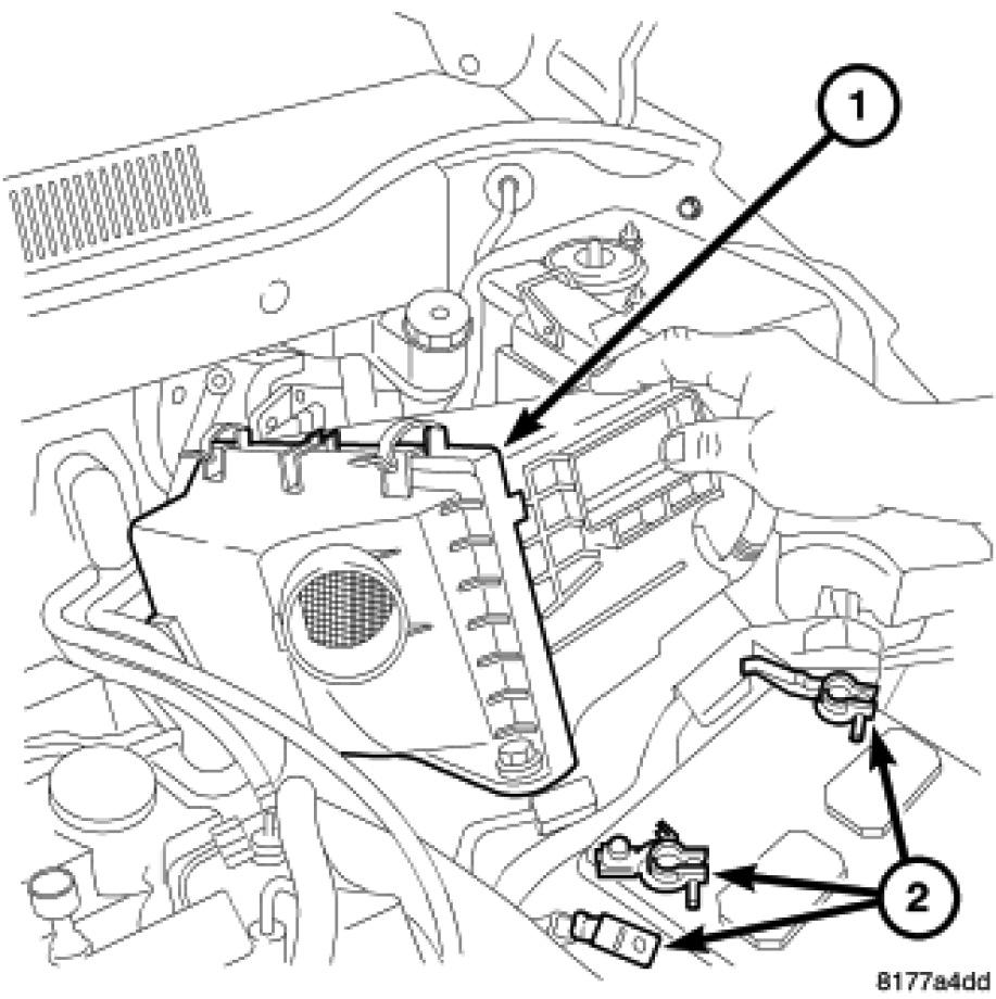 8. Connect the negative battery cable (2).