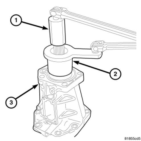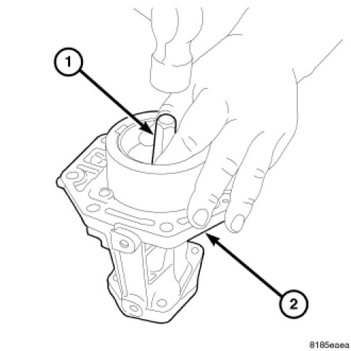 4. Using a chisel (2) remove the dust shield (1) from the extension housing (3).
