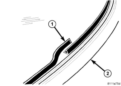 4. Install a new rubber seal (2) along the top of the windshield (1).