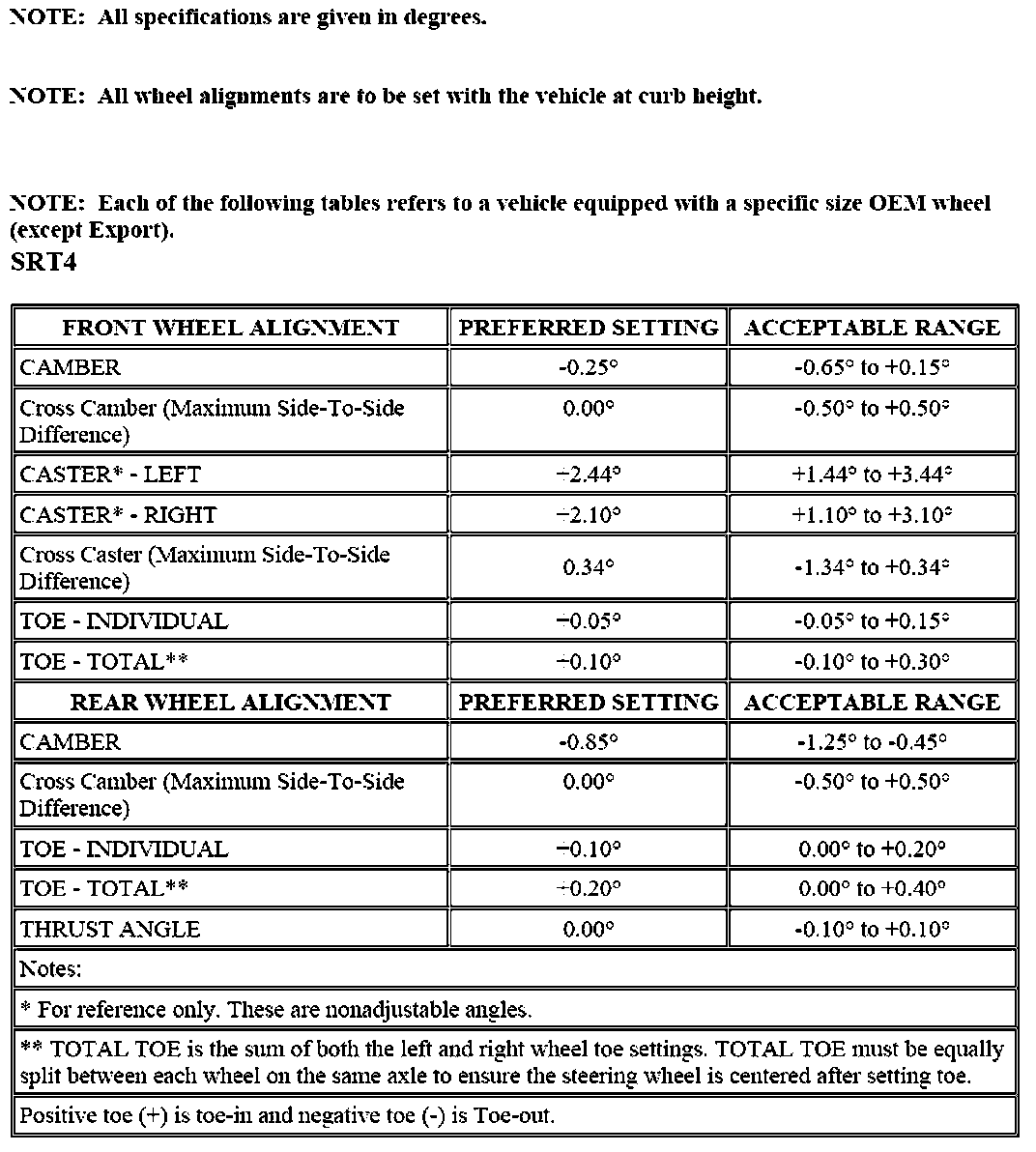 Wheel Alignment Specifications