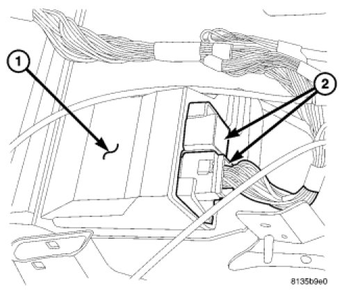 3. Connect the two electrical connectors (1 and 2, referred to as C1 and C2 in the diagnostic and wiring information).