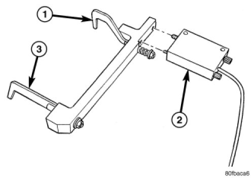 18. Mount Inclinometers (2) to rear Caster Angle Adapters. Make sure inclinometer from left side of Switch Box is mounted to left adapter and inclinometer from right side of Switch Box is mounted to right adapter. To make sure each inclinometer is mounted right-side-up on Adapter, upper mounting screw is larger diameter than lower.