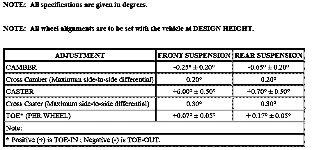 Wheel Alignment Specifications