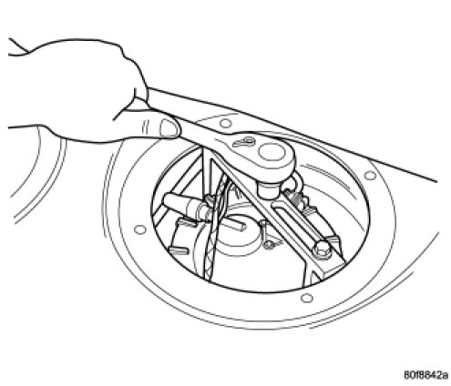 14. Use Special Tool #6856 to remove fuel pump module locknut.