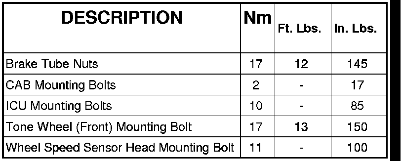 ANTILOCK BRAKE SYSTEM FASTENER TORQUE