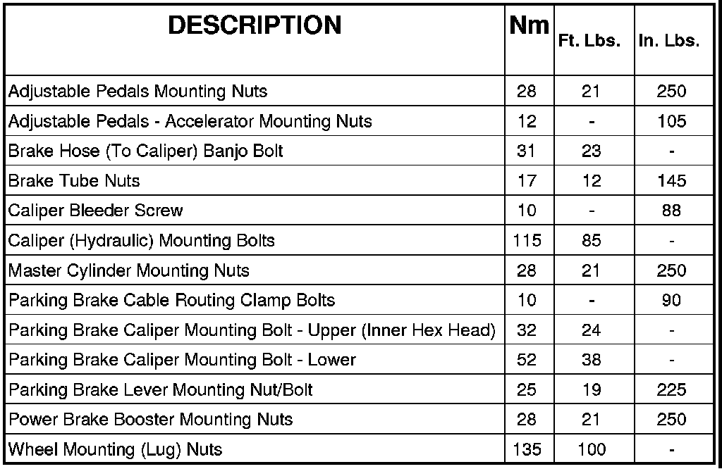 BRAKE FASTENER TORQUE