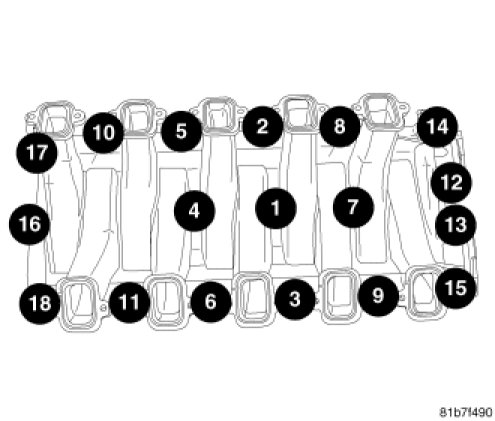 INTAKE MANIFOLD TORQUE AND SEQUENCETighten bolts to 12 Nm (106 in. lbs.) as shown.