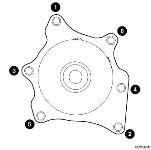 1. Tighten water pump bolts in the sequence 11 Nm (95 in. lbs.).
